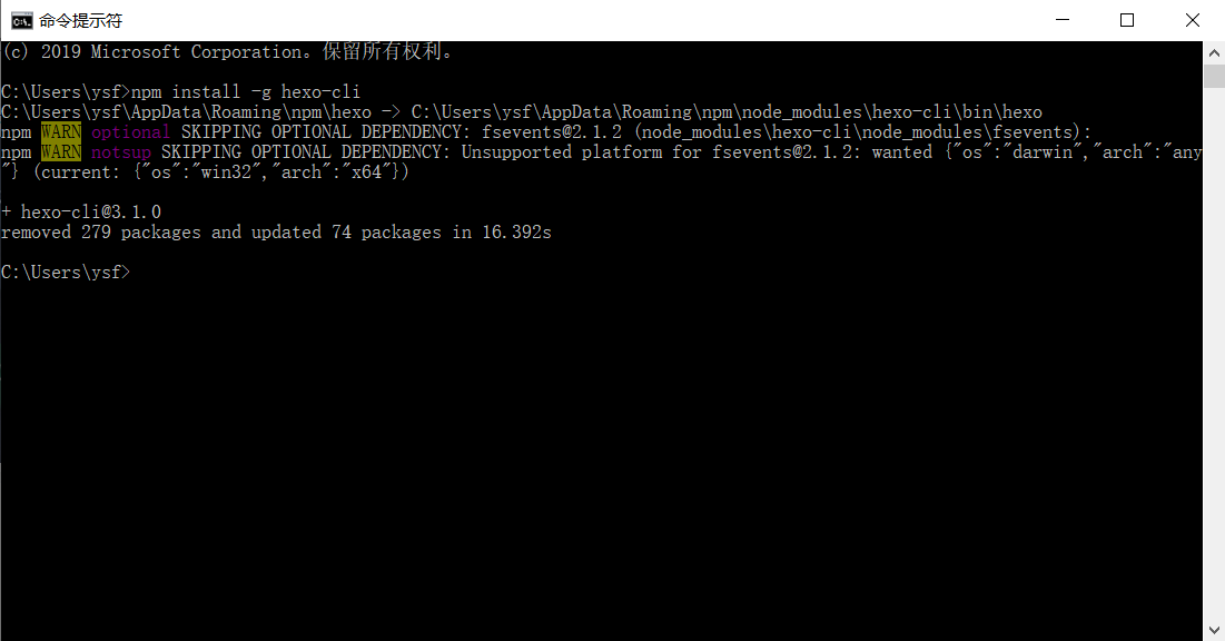 等待安装 hexo 完成