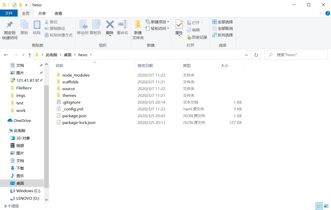 name指你博客(注意:此处博客指博客系统的根目录,包括博客静态文件以及配置文件、主题等)存放的文件夹名称(如果不存在,则会自动创建)。创建完成后,打开这个文件夹你看到的会和下图中类似